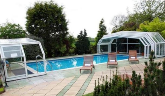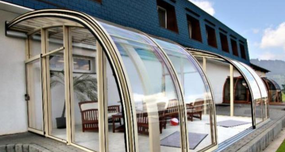 這種陽光房使用時可以鎖起來,冷的時候可以讓你曬曬太陽,不會覺得冷,也非常適合接待客人。有些家庭還會在里面建一個游泳池,不使用時會直接縮起來,這樣就可以用作裝飾,不會占用空間。