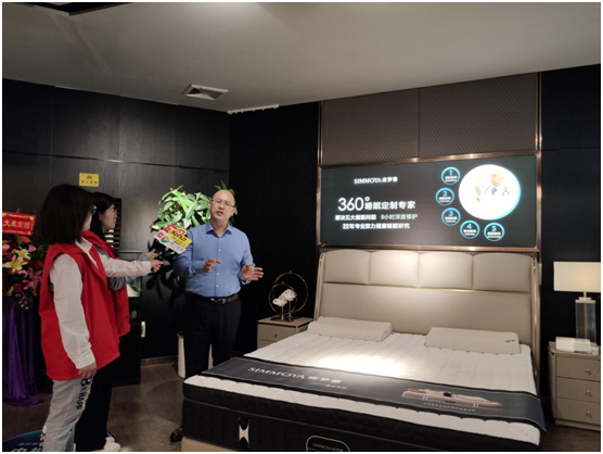 許多客商被康麗萊家居的品牌魅力和產品特色所吸引,紛紛從展會現場專程來到康麗萊總部展廳再仔細了解和品鑒,零距離體驗各種系列床墊和軟床實物。康麗萊業務團隊熱情專業的引導和講解,從原材、面料到技術,令人驚喜和滿意,隨后進店觀看的人群越來越多,熱鬧非凡。