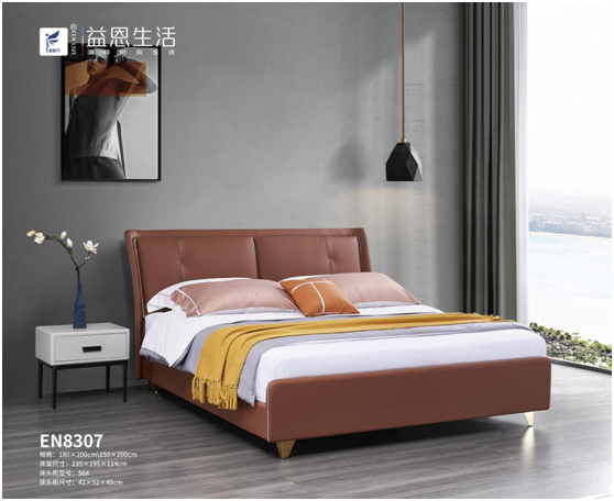 橙色是時尚之色,那抹艷麗之色牽動無數人的心弦。當那充滿活力的橙色映入眼簾,我們腦海中會不由自主地聯想到愛馬仕品牌的奢華與時尚。益恩家居EN8307暮光橙色軟床,低奢有質感,大氣不沉悶。精選優質的皮革,久用不易變形,質感十足,簡約、復古的縫線,略帶傾斜的軟靠,活潑俏皮,為冷冷的冬日增添一份溫暖。