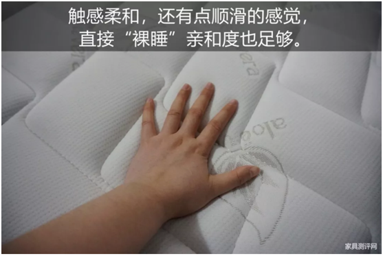 左下角還特意做了一個(gè)可視窗,可以直接看得到里面打了孔的乳膠,內(nèi)部用料坦坦蕩蕩的放出來(lái)讓人看。床墊表層用了蘆薈面料,有很強(qiáng)的吸濕和放濕性,容易讓皮膚保持滋潤(rùn)狀態(tài)。