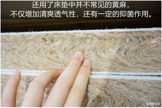 另一個(gè)區(qū)別于傳統(tǒng)椰棕的做法——采用的棕絲是用“S型”的方式進(jìn)行了排列。相比壓平式的組合形式,彈性更加突出,睡的時(shí)候多了個(gè)緩沖幅度。即使體型偏瘦的人,也不會(huì)覺(jué)得生硬。用了床墊中并不常見的黃麻。主要是為了增加床墊的清爽透氣性,還有一定的抑菌作用,用料配比都是很講究的。最后,經(jīng)過(guò)一次高溫脫糖,極大程度地降低了長(zhǎng)蟲的可能。