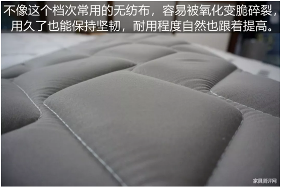 裥花層底部面料用的是觸感非常細(xì)膩柔滑的棉布。而且用手拉扯時(shí)可以明顯感覺(jué)到韌勁十足,無(wú)論視覺(jué)還是手感都十分高級(jí)。不會(huì)像這個(gè)檔次床墊通常用的無(wú)紡布,容易被氧化變脆碎裂,即使用久了也能保持堅(jiān)韌,耐用程度自然也極大程度的提高。裥花層和舒適層中間也用了一個(gè)代替無(wú)紡布的東西——康麗萊獨(dú)家定制的酷布。拉力非常強(qiáng)大。兩個(gè)成年人一起用力撕都難以破壞,用來(lái)睡覺(jué)就更不用說(shuō)了。總之一個(gè)原則:能用好的就絕不用差的。
