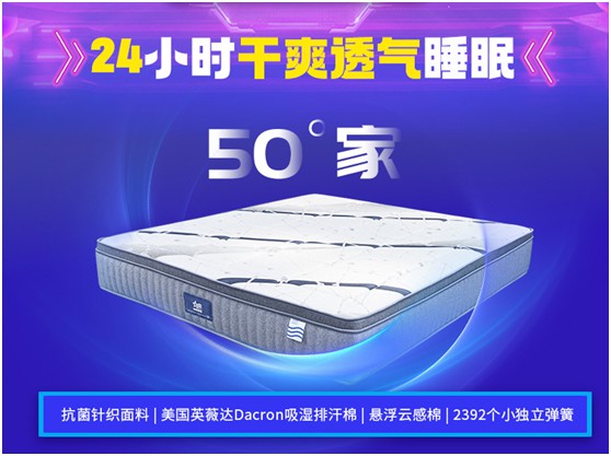 為此,湖南37年睡眠專家星港家居最新推出的50°家床墊,不僅增強了床墊的干爽透氣性,還能夠吸濕散熱,讓睡眠環(huán)境濕度長時間保持在適合人體體感舒適的層次。