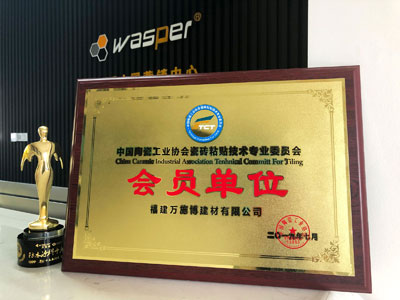 “中國(guó)陶瓷工業(yè)協(xié)會(huì)瓷磚粘貼技術(shù)專業(yè)委員會(huì)會(huì)員單位”牌匾