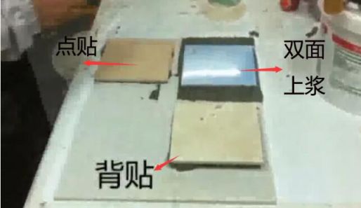 我們把攪拌好的瓷磚膠利用雙面上漿法、點貼法、背貼法來粘貼瓷磚。