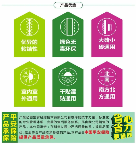 面對市面上成千上百種瓷磚類型,如何讓它們牢牢粘在墻上。只有選擇匹配的瓷磚膠、背膠相輔相成搭配使用,才能夠發揮超強粘結力效果,有效避免掉磚的悲劇發生。