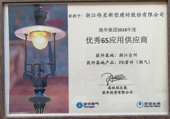 會上,偉星新材榮獲“港華集團2018年度優秀6S應用供應商”稱號。港華集團對供應商的6S應用管理要求較高,在港華集團上百家供應商中,僅有為數不多的企業獲得該榮譽。