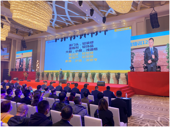 在主持人的邀請下,國內(nèi)知名的家居建材行業(yè)戰(zhàn)略營銷專家劉登榜老師亦登上舞臺,從經(jīng)營之道、團(tuán)隊(duì)之道、銷售之道、服務(wù)之道四個(gè)緯度為金德經(jīng)銷商講解終端破局之法。