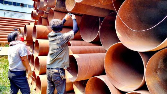 為了減少驕陽的曝曬,盤存人員早上6點多就開始了鋼管的清點。即便工作往前趕,但為了盡早完成總的工作量,他們依然堅持到了中午下班時間。
