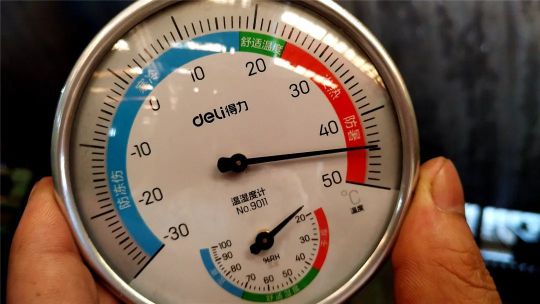 滴在脖子里的汗水,是我們向著目標前進的見證。很多一線人員披著毛巾,卻經常沒有時間及時去擦。只有找到工作的間隙,才趕緊擦上一把。這兩天的室外溫度是38℃,生產車間的溫度有多高呢?我們來看一下鋼管車間工人拍的溫度計。