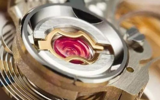 如果剛好你的機械表就是背透的設計,那么通過后蓋就可以發現這個避震器。實際上避震器非常小,但是卻很容易找,因為它的作用就是為擒縱系統緩震,所以在擒縱的軸心部位就能找到它,一般帶著一顆紅寶石。這個避震器的原理就是依靠避震底座與彈簧片的配合,將來自外部的沖擊力抵消,以不至于影響到嬌弱的游絲。