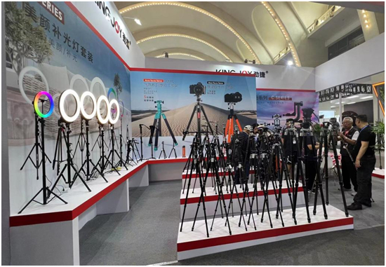 在T216展位上,KINGJOY勁捷攝影器材展示了包括獵影系列、海岳系列、青春旅拍系列、飛燕系列、極光系列以及美顏補光直播支架系列等在內的多款新品。這些產品不僅在設計上充滿創意,更在實用性和功能上賦予了攝影師們全新的拍攝體驗。