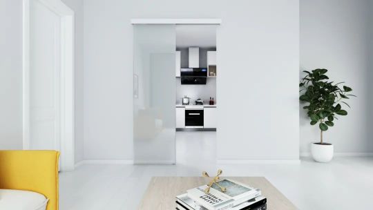 FG80 反向垂直對開移門應用五金可以在90°轉角位置安裝,用于廚房、書房、陽臺等空間,以明確的界限,提升空間層次感。這是現有移門五金產品中的又一次升級,為設計師、居者提供更多創新的可能。