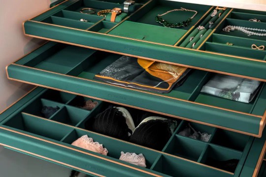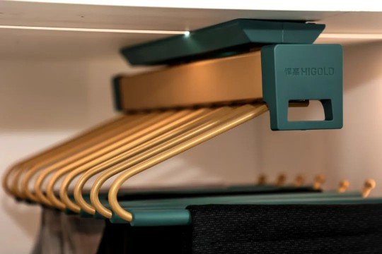 BV系列衣柜功能五金采取復古輕奢的莫蘭綠配色設計,大氣優雅又不失舒適輕松,兼具視覺美感和風格搭配,營造優雅又舒適自由的衣柜空間氛圍。每一個類別的功能收納籃高效利用每一寸空間,連轉角處的儲物空間也充分利用,非常精美。生活的格調,在輕奢衣帽間上渾然天成。