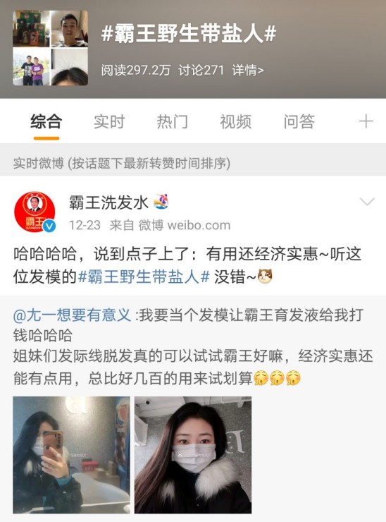 微博是年輕人的聚集地,霸王化名“本王”活躍在互聯(lián)網(wǎng)上,出現(xiàn)在曬單的“野生代鹽人”的微博里也出現(xiàn)在大學(xué)生調(diào)侃禿頭的熱搜里。用年輕人的梗跟年輕人對話,是霸王守住微博宣傳口的重點,歡迎大家關(guān)注“霸王洗發(fā)水”微博,和“本王”互動!