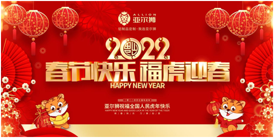 告別牛年,迎來虎年!在2022年新春即將來臨之際,亞獅金屬旗下亞爾獅品牌攜全體員工向新老客戶、廣大經銷商以及關注亞獅金屬發展的各界朋友們,致以新春的問候和美好的祝愿!