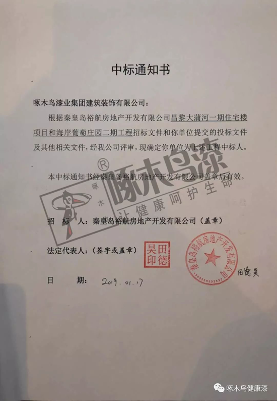 此次同時中標兩個工程項目,展現了公司雄厚實力!也體現了啄木鳥涂料強大的品牌實力,同時也是在前進的道路上增添了重要的一筆。啄木鳥漆將全力以赴,為客戶提供最為專業和優質的設計服務,為雙方的下一次合作奠定堅實的基礎。