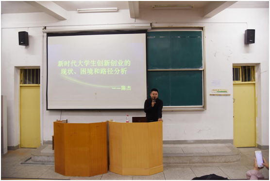 講座上,陳杰董事長向同學們介紹了“創新創業”的概念,并從國家需要、社會需要、個體需要三個方面說明了為什么要創新創業。陳董指出目前創新創業的現狀,并分享了對教育存在誤區、教育師資隊伍不完善、創新創業教育課程體系不健全等問題的看法。