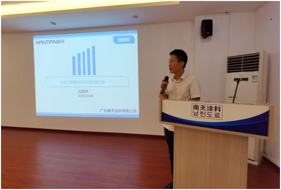 最后總經理祝燕弟先生對第三季度的銷售工作情況作了總結后表示,自2020年開年以來,受疫情的影響,整個化工涂料行業的發展處于非常嚴峻的局勢。在市場大環境普遍低迷的背景下,南天涂料危中求機,以強大的品牌實力和堅定的品牌信心迎接挑戰,取得了不菲的成績。