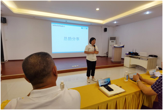 隨后,總經理助理譚小燕聽完各大區的匯總工作也在會上做了分享,她對各區的銷售工作給予了充分肯定,這得益于所有南天人有策略、有狼性、穩定有序的搶抓營銷進度。并期待各位南天人繼續前行,在下一季度斬獲更多客戶的信賴和支持。
