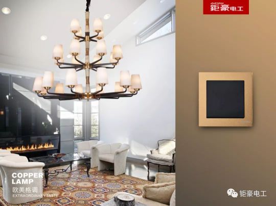 開關搭配:輕奢風格的燈飾,搭配香檳金輕奢元素點綴的開關,與帶輕奢風的燈飾相得益彰,馬上把家中的氛圍”點亮“了起來。