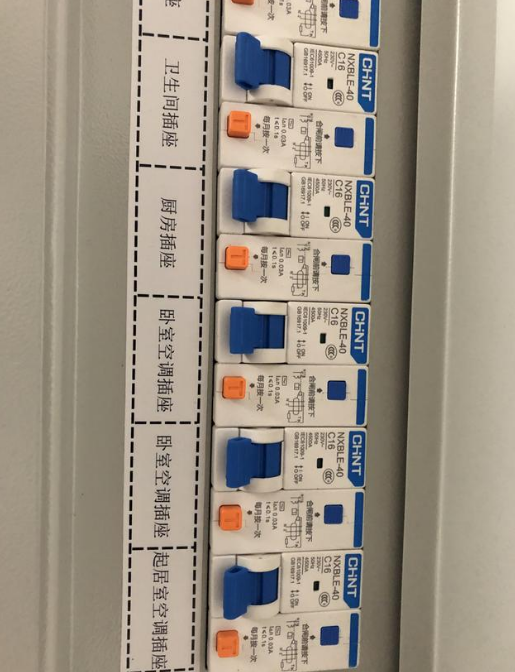 從左面左手第三個(gè)開始開始,都是插座回路的開關(guān)。這些所有的開關(guān)都建議大家選擇漏電保護(hù)開關(guān)。一般我們這樣來排序,從左面第三個(gè)開始是普通插座回路的開關(guān),選擇C16A的;第四個(gè)是臥室空調(diào)插座回路的開關(guān),選擇C16A的;第五個(gè)是柜式空調(diào)回路開關(guān),建議選擇選擇C20A的或者是選擇C25A的;第六個(gè)是廚房回路的開關(guān),建議大家選擇C20A的或者是選擇C25A的;第七個(gè)是衛(wèi)生間回路的開關(guān),建議大家選擇C20A的或者是選擇C25A的;另外,如果家里的普通插座超過十個(gè),還要單獨(dú)增加一個(gè)回路。每個(gè)空調(diào)都是單獨(dú)一個(gè)回路,大家要記住。