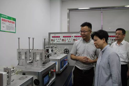 走出注塑車間,領導一行參觀了技術研發中心,劉小勇董事長介紹了公司的研發團隊、研發投資和知識產權。張迎春市長表示,在當前經濟低迷的情況下,他對堅持產品和應用技術創新、引進新設備、擴大生產規模、給予深思電工高度認可,同時要求湘鄉市等相關單位盡最大努力為企業發展提供協調服務。