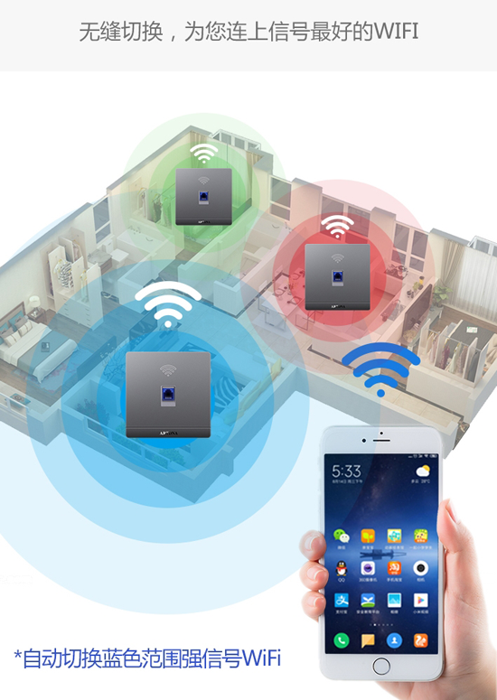 (3)信號好:室內多點安裝,無論在哪個角落,都能自動切換到信號最好的WiFi連接,不怕斷開網絡!