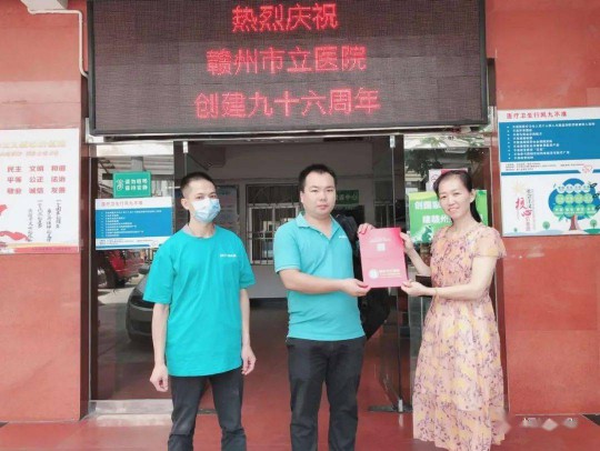 贛州市立醫院對福田公司的公益行為表達了充分的認可與感謝,并回贈證書表彰福田熱心公益、兼濟天下的大愛情懷。