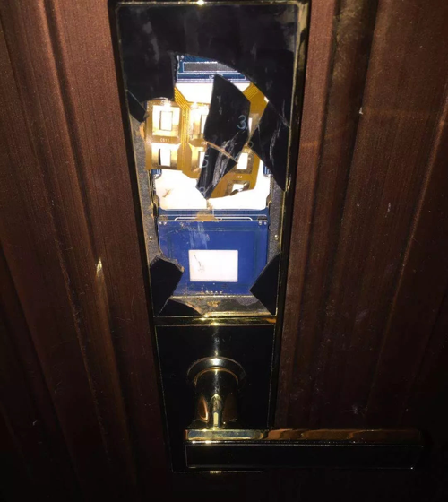 ▲圖為主人家被暴力破壞了的VOC智能鎖