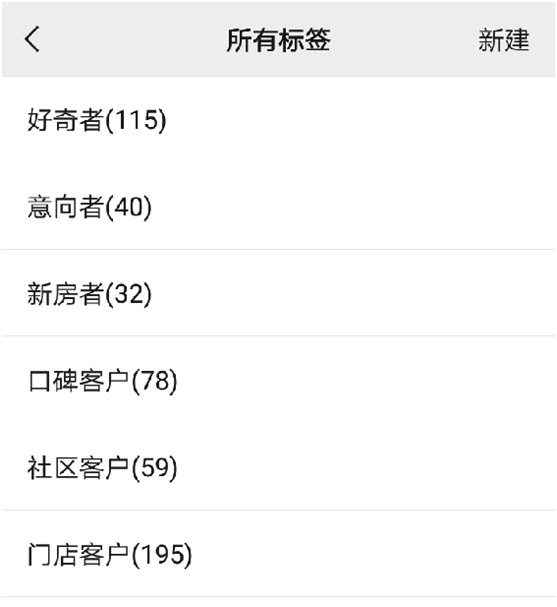 對于智能鎖銷售人員來說,朋友圈管理的本質(zhì)就是給好友列表分類,進(jìn)而針對性的展示信息。因此,銷售人員與顧客溝通的過程中,應(yīng)獲得相應(yīng)反饋,了解顧客潛在屬性,并以此為依據(jù),進(jìn)行標(biāo)簽化設(shè)置管理。以下為標(biāo)簽分組示例。