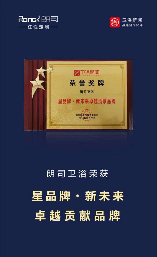 12月25日,朗司衛浴誠邀出席了“星品牌 新未來2019地產-整裝-渠道-衛浴產業鏈峰會”,與上千名行業企業高層代表齊聚佛山,一起見證此次行業盛況,共商行業發展大計,為中國衛浴產業發展提供助力。峰會表彰大會上,朗司衛浴憑借全產業鏈制造優勢和過硬的產品實力,榮獲“卓越貢獻品牌”。