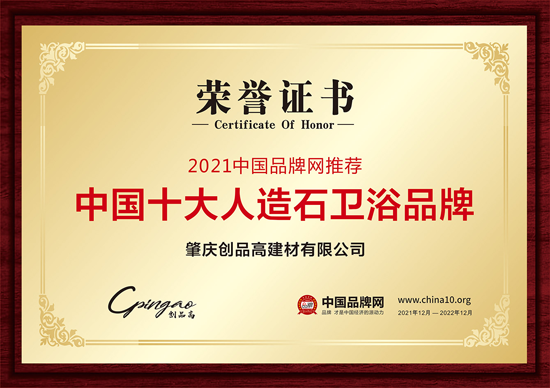 經(jīng)過(guò)層層審核、激烈競(jìng)爭(zhēng),創(chuàng)品高衛(wèi)浴品牌憑借優(yōu)質(zhì)的產(chǎn)品、完善的服務(wù)、良好的口碑,在一眾知名品牌中脫穎而出,一舉榮獲2項(xiàng)全國(guó)性品牌殊榮——“中國(guó)十大衛(wèi)浴品牌”、“中國(guó)十大人造石衛(wèi)浴品牌”兩大稱號(hào),彰顯出創(chuàng)品高在業(yè)界的實(shí)力和地位!
