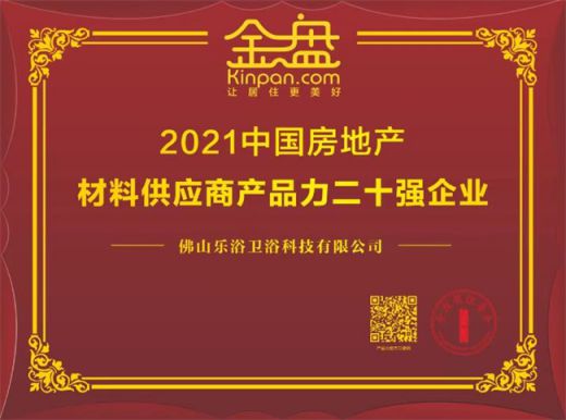 在活動(dòng)中,佛山樂(lè)浴衛(wèi)浴科技有限公司智能情調(diào)淋浴憑借自身出色的產(chǎn)品以及卓越的品質(zhì),經(jīng)過(guò)多維度評(píng)選,成功入選金盤(pán)周的2021中國(guó)房地產(chǎn)材料供應(yīng)商產(chǎn)品力二十強(qiáng)企業(yè),為佛山樂(lè)浴衛(wèi)浴科技有限公司厚重的榮譽(yù)簿上再添濃墨重彩的一筆!
