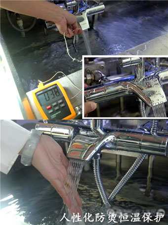 龍頭內配有限流節水器,在使用過程中起到自動調節淋浴所需水流量,可以最大限度的節約用水資源。此外,冷熱水的進水端采用防逆流設計,可以有效防止冷熱水的壓力在不平衡的情況下互竄水。