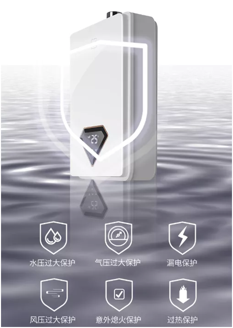 對于用電、用氣的燃?xì)鉄崴鳎逶“踩U鲜腔A(chǔ)。對此,考慮到用戶在使用時的人身安全,燃?xì)鉄崴鱄61搭載了多重安全防護系統(tǒng),如水壓、氣壓過大保護、熄火保護、漏電保護、防干燒保護、防凍保護等,實時保障用戶洗浴安全。