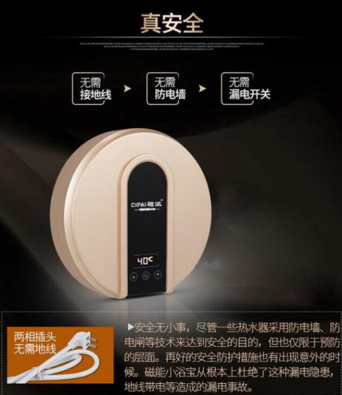 當“磁能熱水器”讓熱水器行業由被動防護時代走向主動安全時代!不用防電墻,不用防漏電開關!不用任何防護手段,電!從此再不可怕!