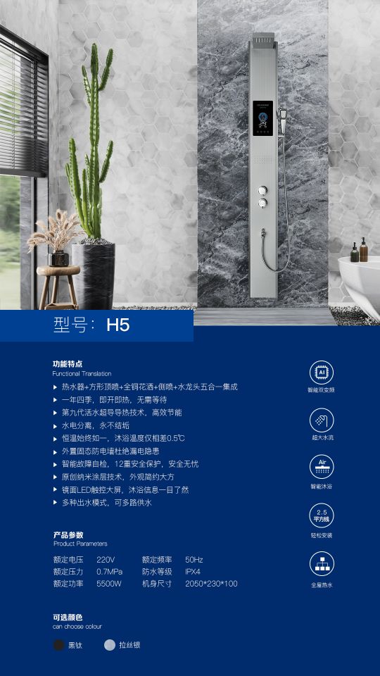 歐帝潔活水集成熱水器采用直流健康活水,不需儲(chǔ)水,即開即熱,不結(jié)水垢,使用壽命長,進(jìn)入加熱系統(tǒng)的冷水,先經(jīng)過節(jié)能保溫和加熱,將冷水變成溫水,冷水中含的易結(jié)晶的雜質(zhì),在溫水中很容易融化,融化了雜質(zhì)的溫水再進(jìn)入加熱系統(tǒng)快速加熱,因此不會(huì)產(chǎn)生水垢,輕松解決排除藏污納垢,讓人隨時(shí)體驗(yàn)健康活水淋浴暢享生活。