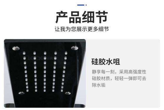 不僅如此,淋浴屏還采用304不銹鋼防指紋處理工藝,使產品保持原有光澤,歷久彌新,增加產品壽命的同時無需經常性的維護和保養(yǎng),并運用了智能LED顯示屏技術,伴有一鍵熱水定制功能,高清簡單的屏面,讓老人小孩簡單易懂。