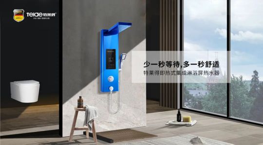 而特萊得Q4-85即熱式集成淋浴屏熱水器則能完美解決這一問題,通過智能超導導熱技術,3秒急速恒溫出水,無需儲存熱水,無需預熱保溫;