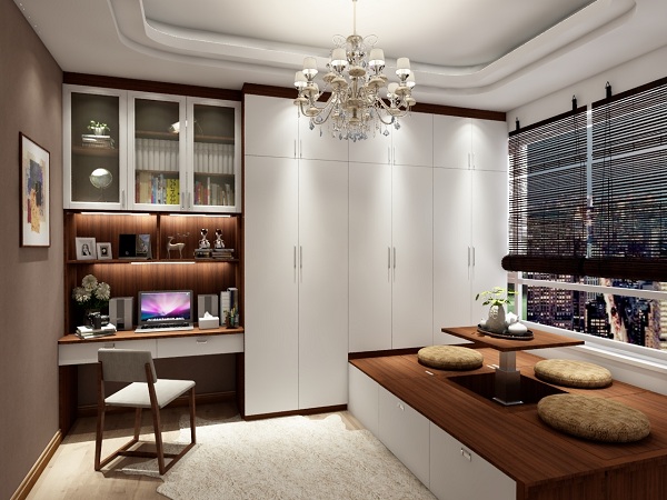 4.多功能定制衣柜,傳統衣柜只能用來存放衣物,但定制衣柜也可以用作休閑茶、擺放植物、養金魚、安裝電視等,以實現多用途。