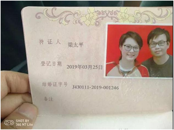 ▲網(wǎng)傳袁立、梁太平結(jié)婚證照片