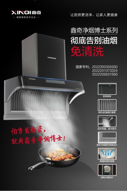 鑫奇油煙凈化機,超大吸力,可以實現99%的油煙分離率,徹底告別油煙,爆炒辣椒也聞不到嗆味,而且免清洗,非常省心。