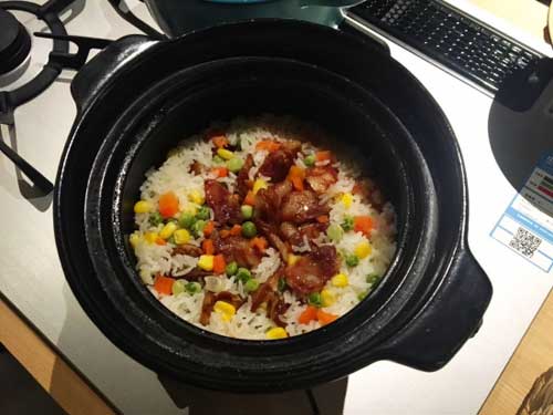 現(xiàn)場(chǎng)正在大火猛烹油炸花生米,雖然是個(gè)很簡(jiǎn)單的下酒菜,但是十分考驗(yàn)火候,反正小編老媽哪次都能給炸糊了。不過(guò)如果用這個(gè)灶來(lái)烹飪,它就能進(jìn)行智能控制,妥善操控油溫,即不糊鍋、也不糊食物,給你白胖香脆的花生米。