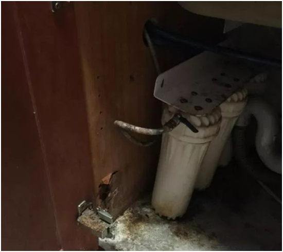 全部拆除后,發(fā)現(xiàn)木質(zhì)櫥柜在內(nèi)部都變形發(fā)霉了!觸目驚心!