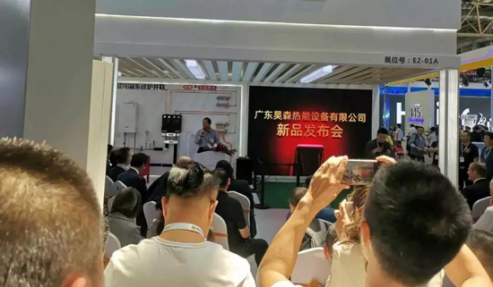 5月7日,2019年ISH北京中國供熱展第二天,廣東昊森熱能設備有限公司在博諾安展位E2-01A舉辦了盛大的新品發布會。博諾安150KW大功率壁掛爐式燃氣熱水采暖爐驚艷首發,功率屬國內目前最大。
