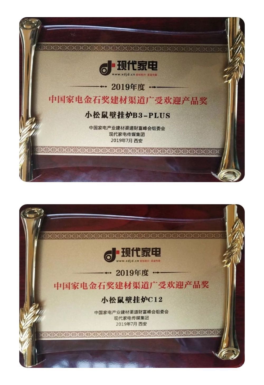 2019年7月2日為期兩天的首屆中國家電產業建材渠道財富峰會在西安建國飯店圓滿落幕。迪森家居旗下的小松鼠壁掛爐B3plus和C12同時榮獲中國家電“金石獎”之建材渠道廣受歡迎產品獎。