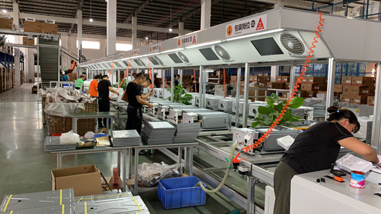 “現在目前我們已經開設3條生產線運轉,每天的產量在2000臺左右,確保了產品的如期發貨。”
