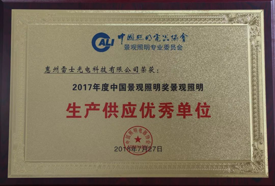雷士照明被評為“2017年度中國景觀照明獎景觀照明生產供應優秀單位”