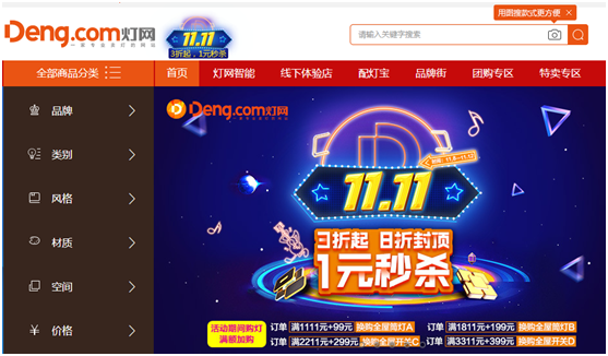 據調查,目前大多數中國家庭的燈飾消費約占裝修費用的10%,結合“互聯網+”創新氛圍的大力推動,可見現階段燈具電商行業正處于良好的市場大環境。Deng.com燈網,這家專業賣燈的電商平臺,正是在此環境下獲得迅速成長,在去年(2018年)持續3天的“雙11”活動中,創下了全新記錄——累計超出1.05億的成交額。